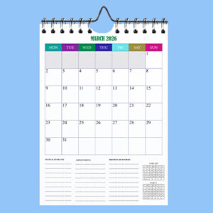 Wall Calendar/ Planner Family Calendar – A3/A4 Portrait January 2026 to February 2027
