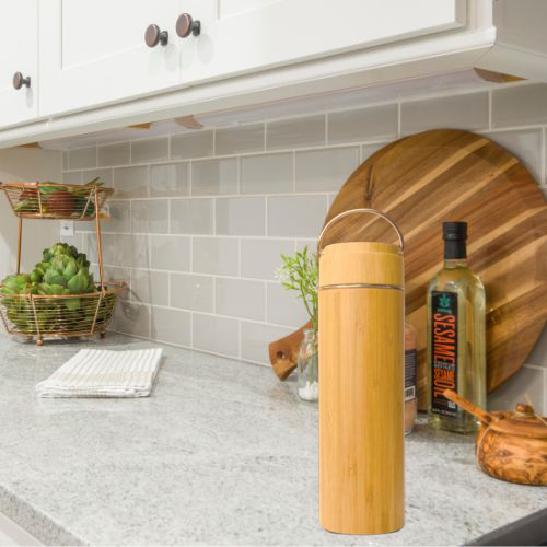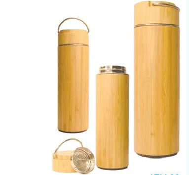 Eco-friendly Bamboo stainless steel drinkware super premium flask with portable handles a mix of steel and bamboo 304-grade steel used inside with natural bamboo outside .