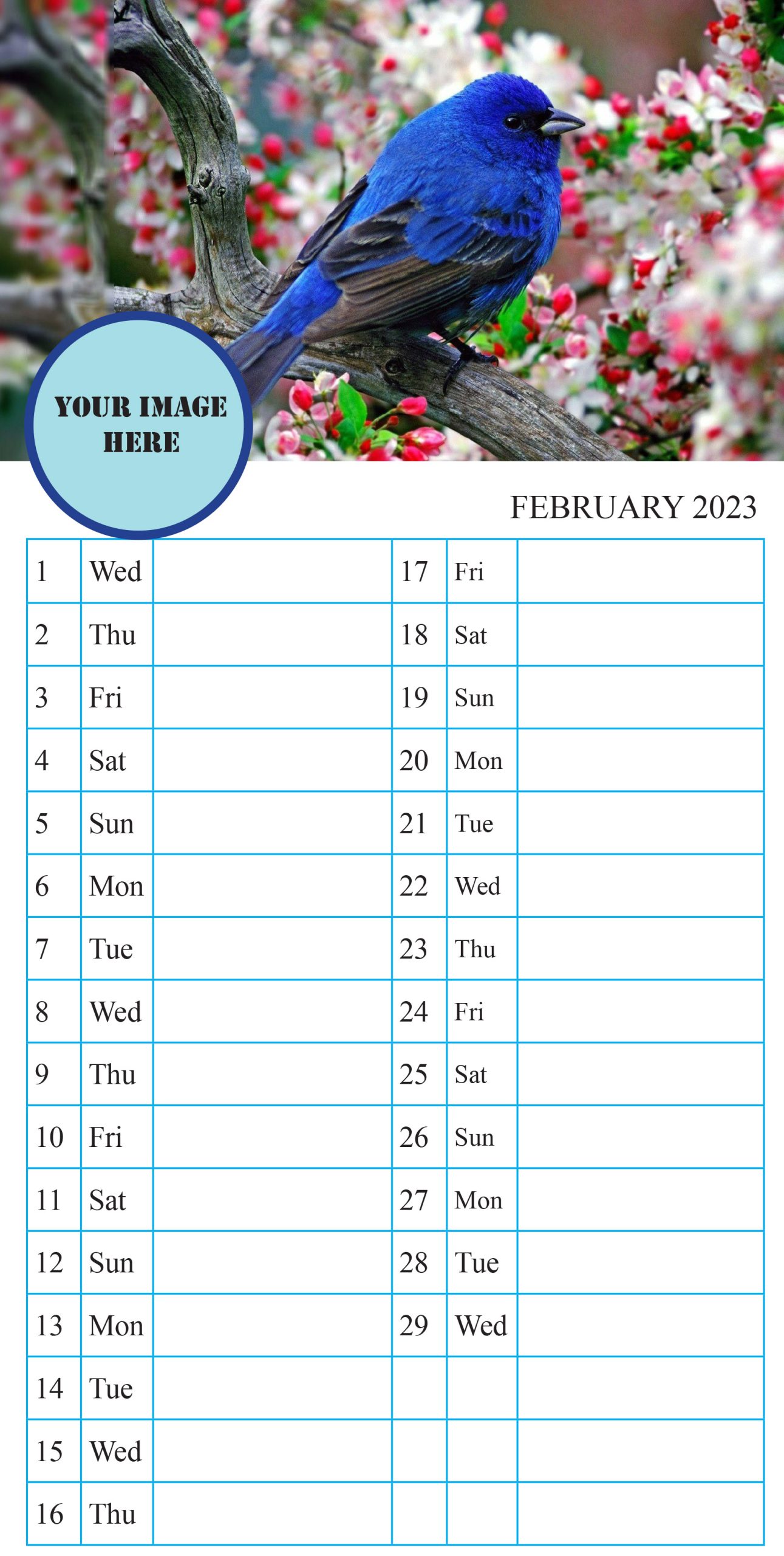 Personalised Wall/ Slim Photo Calendar – Size 15cmx 30.48cm