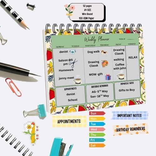 Weekly Planner for daily use, perfect for enhanced productivity and goal achievements, 52 pages per pack, paper 100 gsm, size 8.3 x 11.7 inches (a4 size)